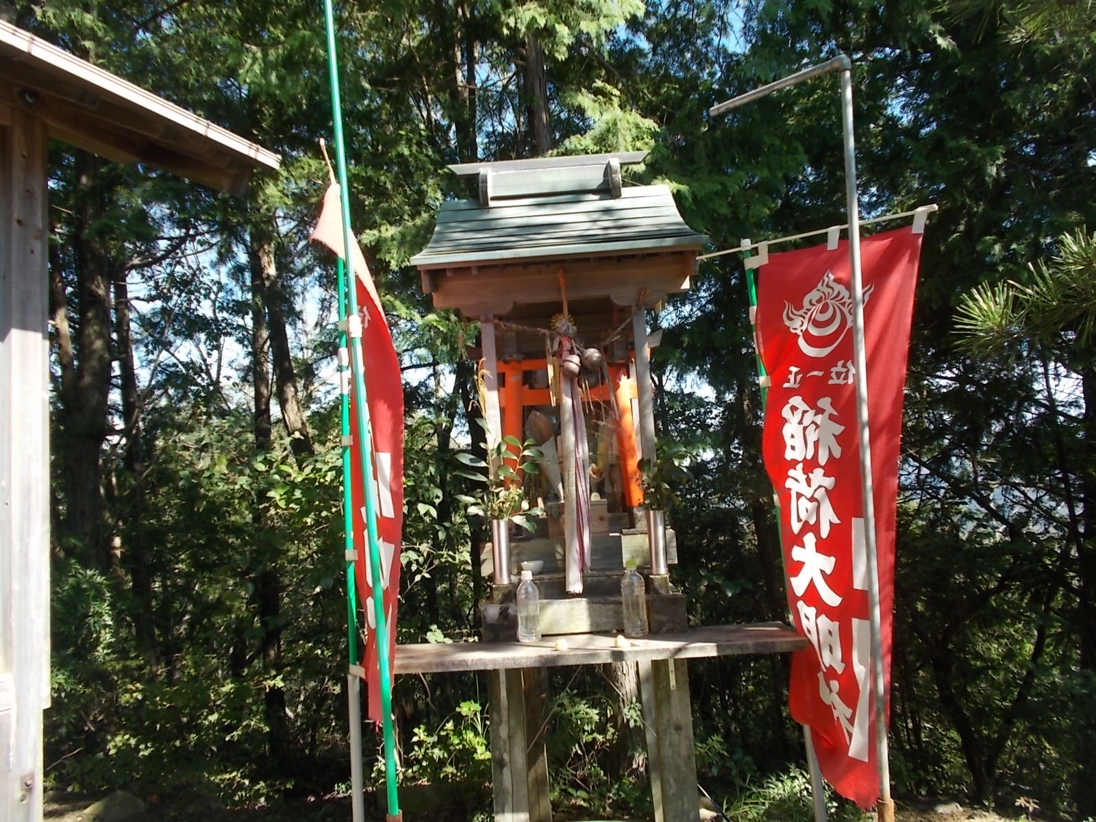 左に赤い鳥居を見ながら進み、住宅地の中の案内に従って左折する。すぐに駐車場に着く。
