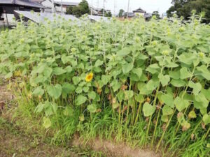 心配してたひまわりですが、最近の雨のおかげでかなり大きくなっていました。