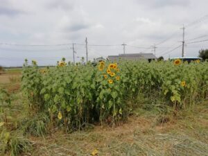 写真では分かりにくいですが、なぜかひまわりがあっちこっちに生えてきてます。