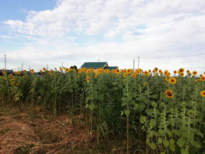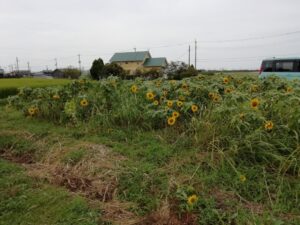 コスモスに続いて、ひまわりも咲き始めました。