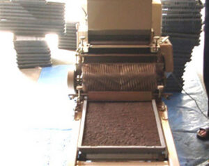 今日は、営農組合の育苗箱への床土(とこつち)入れ作業で、約2,500枚。