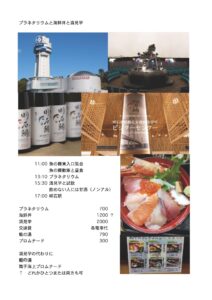 プラネタリウムと海鮮丼と酒見学(オプションあり)の旅程です。