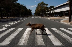 さすが奈良でした。鹿が一頭どうどうと道路を横断してました。